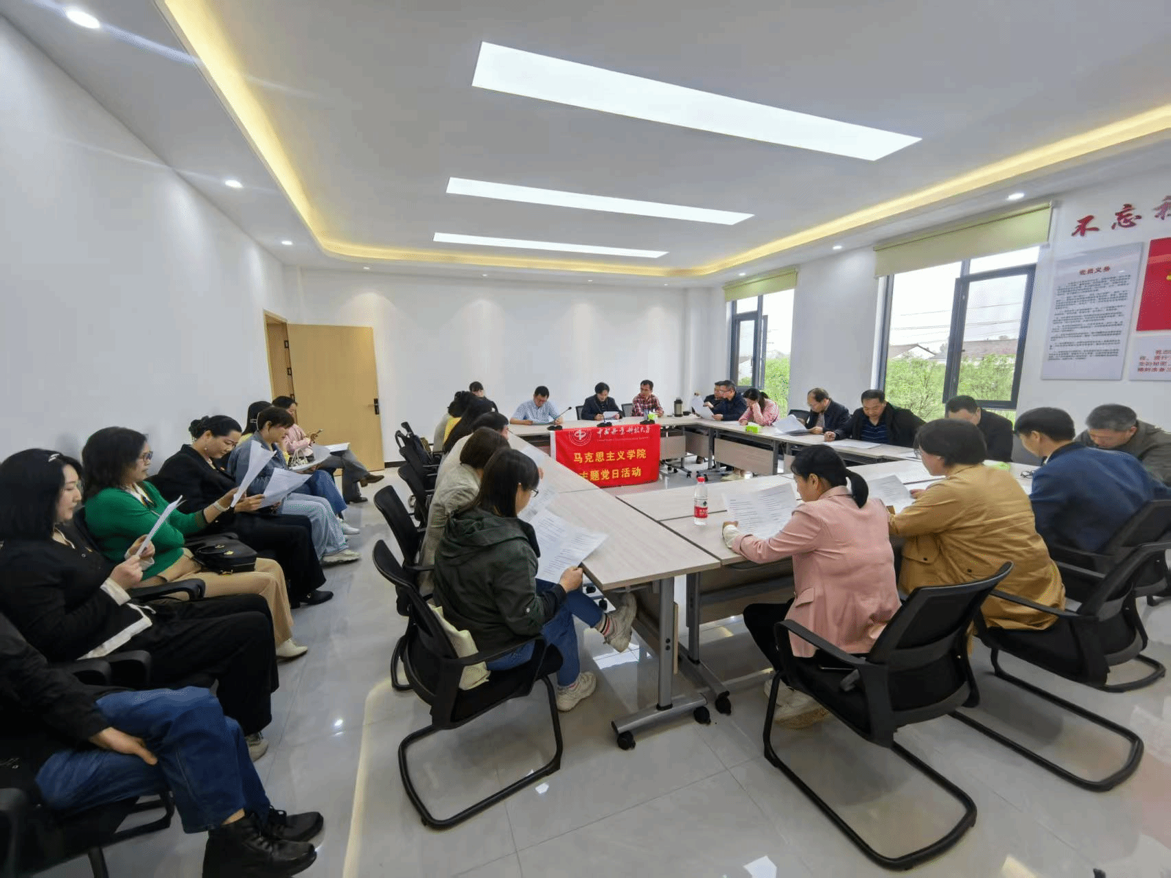 参观结束后,邓集文书记在会议室为支部党员讲授关于深入贯彻中央八项规定精神学习教育的专题党课。他结合高校教师职业行为准则以及中央八项规定的具体内容,阐述了高校思政课教师深入贯彻落实八项规定的重要性和必要性。他强调,作为新时代思政课教师,落实八项规定精神不是简单的纪律要求,更是上好思政课的政治遵循和实践要求,要在教学实践中严格要求自己,不断提升自身的师德师风,增强立德树人的责任感和积极性。