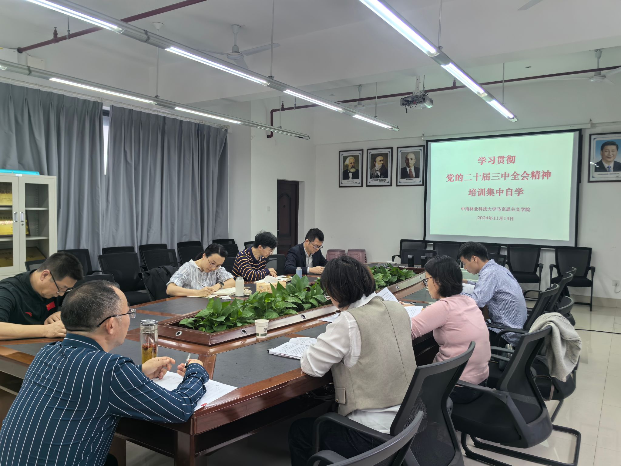 2024年11月14日至15日,马克思主义学院党委理论学习中心组在博文楼南1010会议室举行了“学习贯彻党的二十届三中全会精神”专题培训研讨会,会议分为“学习贯彻党的二十届三中全会精神培训集中自学”及“学习贯彻党的二十届三中全会精神培训集中讨论”两个部分。党委书记邓集文主持并发言,党委委员、各支部书记及教研室主任参加学习。