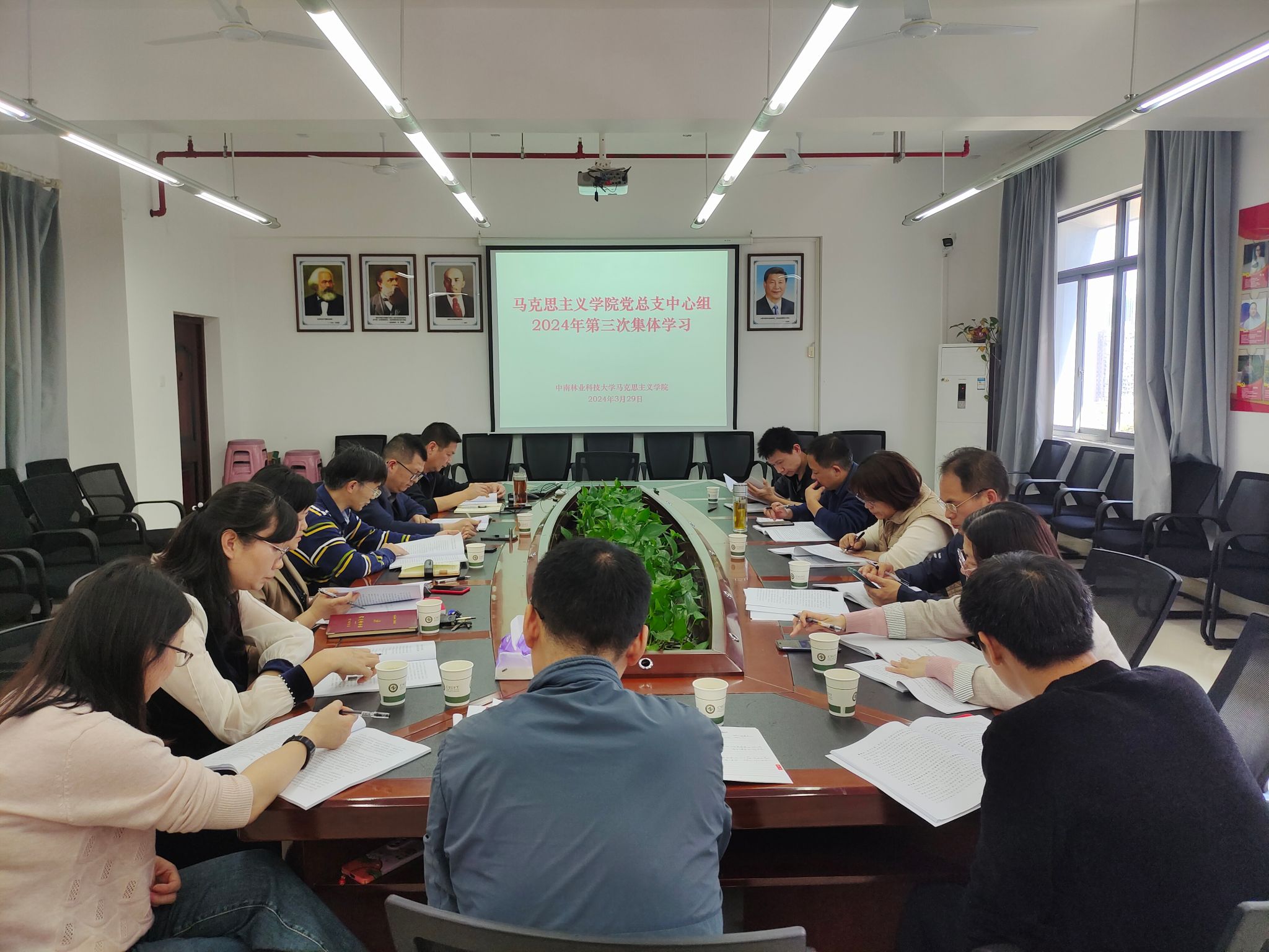 3月30日下午,我院党总支理论学习中心组在博文楼南1010会议室开展2024年第三次集体学习,会议由学院副院长(主持工作)邓集文主持,学院党总支委员、李雄光、各支部书记、教研室主任参加学习。