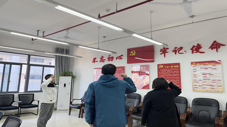 会议在雄浑激昂的《国际歌》旋律中拉开了帷幕。学生党支部书记赵光胜宣读院党委批示的预备党员名单,随后,在党员王军锋同志的带领下,预备党员唐子旺同志、张丽同志在神圣的党旗下庄严宣誓,铿锵有力的入党誓词响彻整个会议室。