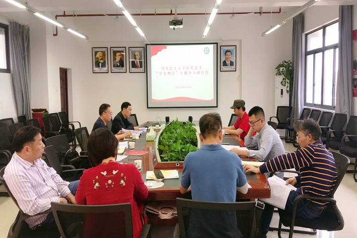 2021年4月30日下午,马克思主义学院党总支中心组在博文楼南1010举行党史学习教育“学史增信”专题学习研讨会。总支书记周预分主持并讲话,院长胡美灵、副院长邓集文分别发言。党总支委员、各支部书记及教研室主任参加。