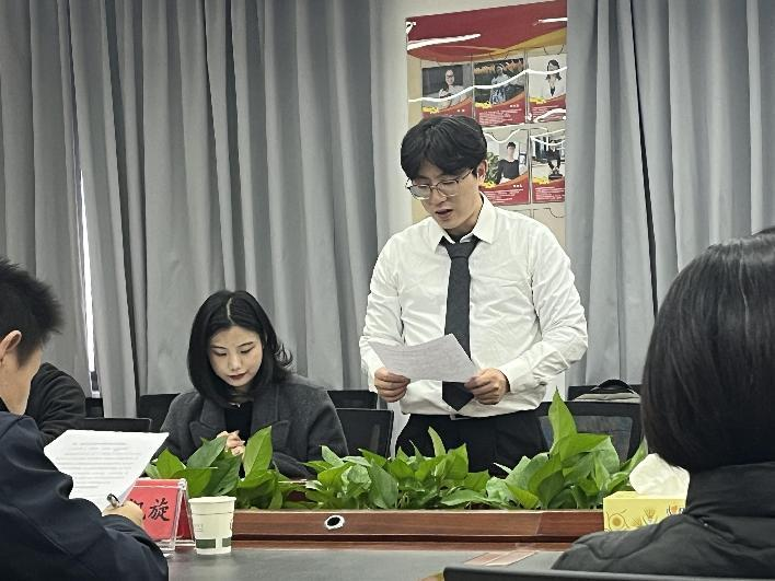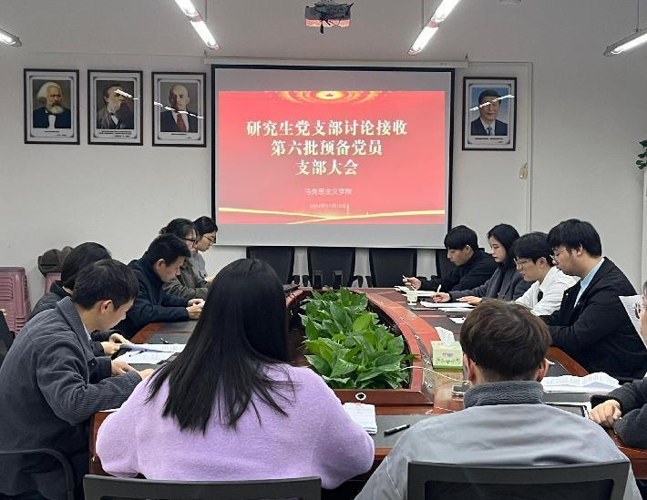 2024年11月18日下午14:30,马克思主义学院研究生党支部在学院会议室博文楼南1010召开了讨论接收预备党员支部大会,本次会议由研究生党支部副书记李昕珂主持,研究生党支部书记佘凯旋老师、刘菁老师、谭诗杰老师、研究生党支部全体党员、发展对象参加会议。