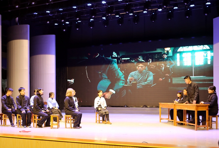 实践教学展示活动由学院组织,《毛泽东思想和中国特色社会主义理论体系概论》课程主讲教师欧巧云副教授策划,傅晓华、刘湘武、陈石明、白雪霜、龙双喜等五位老师担任评委,其他思想政治理论课程老师现场观摩,以课程内容为展示题材,大学生为展示主体和观众,目的是加强思想政治理论课程建设,提升思想政治理论课的针对性、实效性,切实提高大学生思想政治理论课的获得感和幸福感,让学生终身受益。晚会评出了特等奖2个、一等奖5个、二等奖5个,并为同学们颁发了证书。担任活动导演的学生蔡靖怡表示,这种实践教学形式特别好,既升华了自己的理想信念,又锻炼了大家的组织能力和表演能力,还形成了团队合作精神,感觉收获了许多。在台下参与互动的韩艺田表示,经典展示非常震撼,让人不知不觉地走进每个历史瞬间,确实在活动中洗涤了灵魂,受到了教育,增长了知识,希望以后的思政课多举办此类实践活动。