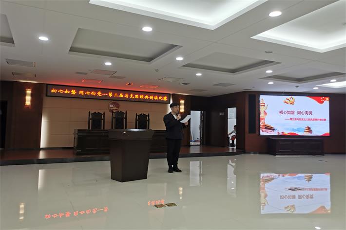 6月4日晚,马克思主义学院在模拟法庭举行“初心如磐 同心向党”第三届马克思主义经典原著讲读比赛。来自各学院的300余名学生代表观看了这场精彩比赛,此次比赛由马克思主义基本原理概论教研室承办。马克思主义经典原著讲读比赛是我院思政课实践教学“一课一品”改革创新的有益探索,是马克思主义基本原理课程教学的课外延展。