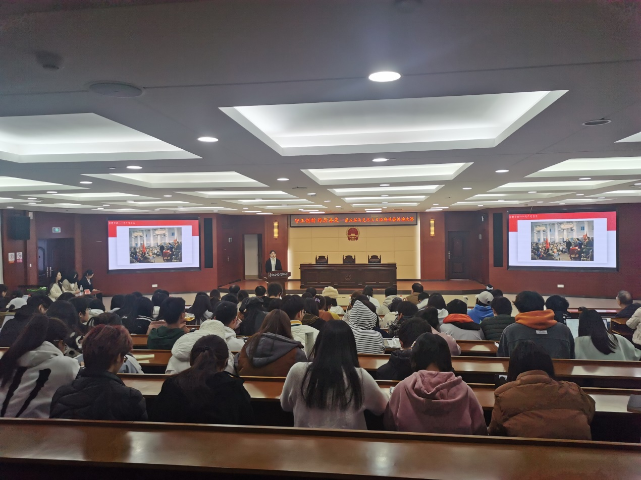 11月25日晚,中南林业科技大学马克思主义学院举办了守正创新 踔厉奋发——第五届马克思主义经典原著讲读比赛。此次比赛旨在进一步推动学生对马克思主义经典原著的理解与掌握,加深其对马克思主义思想体系的认识与理解。马克思主义学院领导、部分教师与300多名学生一同观看了比赛。