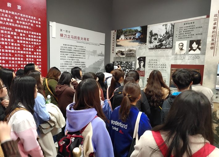 不论是革命先烈曾经走过的青石板路还是古式学堂,还有学堂两侧的天井,都记录着平江起义前后的英勇事迹。自由参观时间里,同学们纷纷用手机记录下几十年前平江大地上发生的伟大印迹;有的还进入了当年彭德怀所住的房间,而里面的椅子上印刻“简单”“整洁”的字样,正印证着当年先烈们的节俭生活作风;书院中还有从古代到近代的历史陈列馆,大家通过实物贴近远去的革命时期。