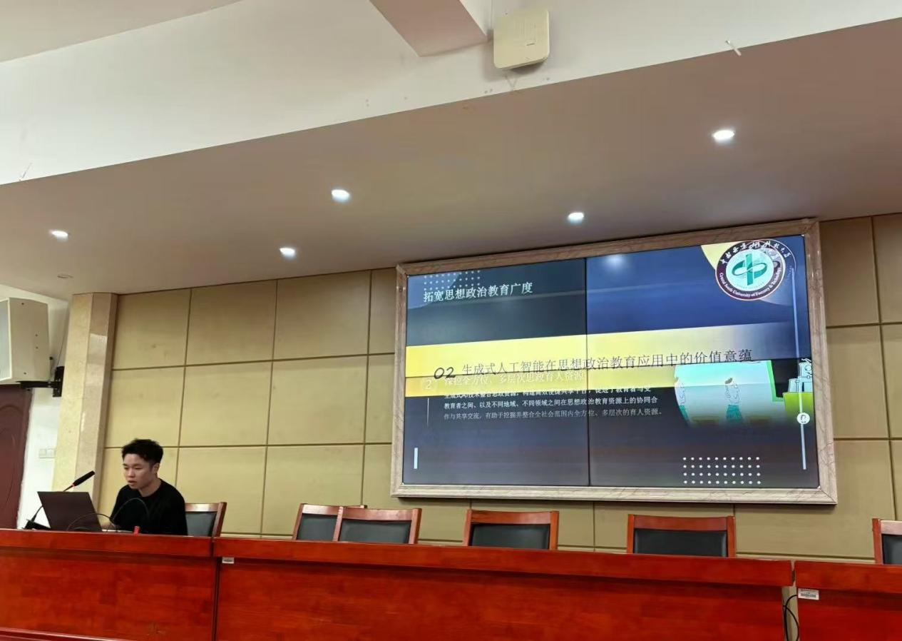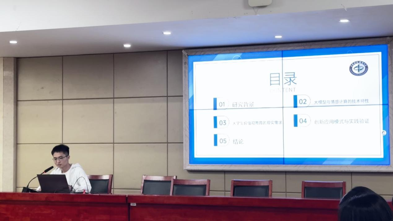 学术分享环节中,我院五位优秀学术代表依次登台,结合文献研究与实践案例,深入探讨人工智能赋能思政教育的创新模式、潜在挑战及应对策略。他们的汇报逻辑严谨、观点鲜明,充分展现了我院研究生扎实的学术素养与敏锐的时代洞察力。湖南科技大学周建华、许浩老师逐一点评,既肯定研究价值,也为后续深化研究指明方向,现场研讨氛围热烈。