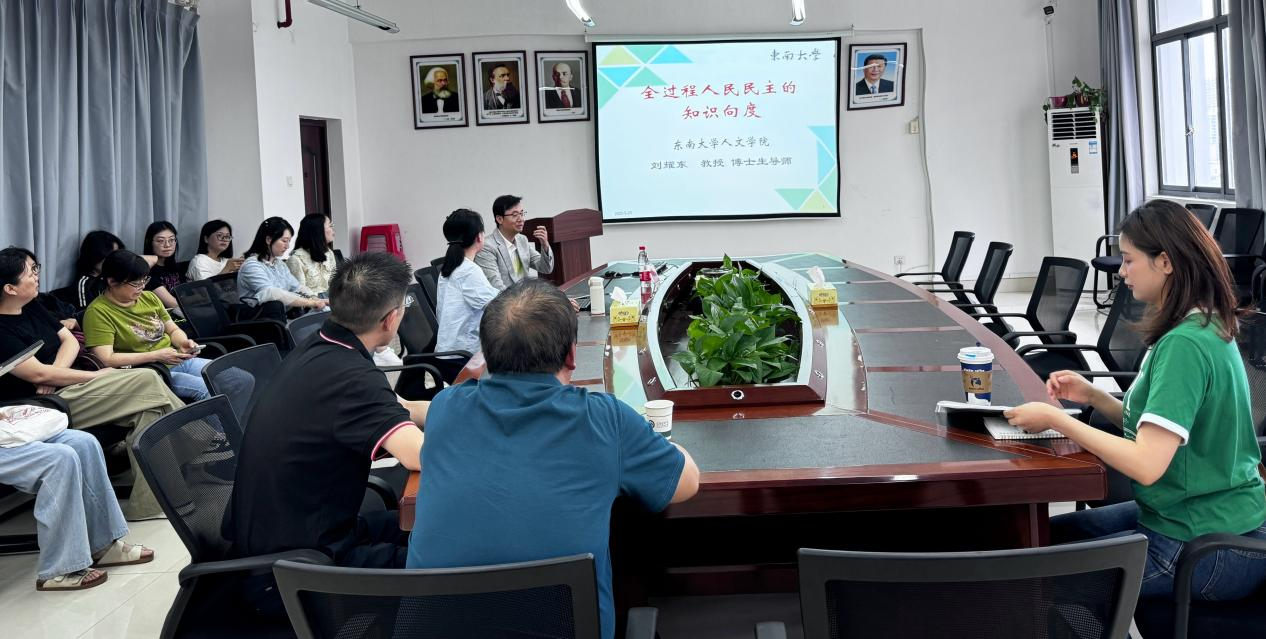 5月23日下午,东南大学人文学院教授、博士生导师刘耀东教授应邀在博文楼南1010报告厅作了题为“全过程人民民主的知识向度”的学术讲座。党委副书记张赓、副院长姚遥、学院教师及在校研究生参加了此次讲座,讲座由姚遥副院长主持。