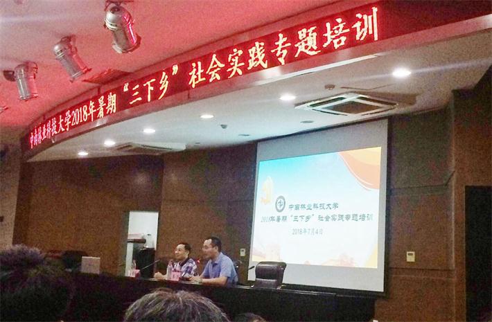 7月4日晚,社团全体实践队员参加校团委组织的2018年暑期“三下乡”社会实践专题培训会,全校所有社会实践队全部参加,大会由校团委书记李凯老师主持,会上我校马克思主义学院党总支书记、我校习近平新时代中国特色社会主义思想学习研究会优秀指导教师周预分应团委邀请进行专题辅导报告。之后我省蓝天救援队前来进行专题技能培训。 会上我社团队员遵守纪律,认真听课,会后纷纷表示受益匪浅。最后预祝全校暑期“三下乡”活动取得圆满成功! (文/赵玉翔 图/张晶 编辑/管贵秋 审核/周预分,袁嘉渝 )