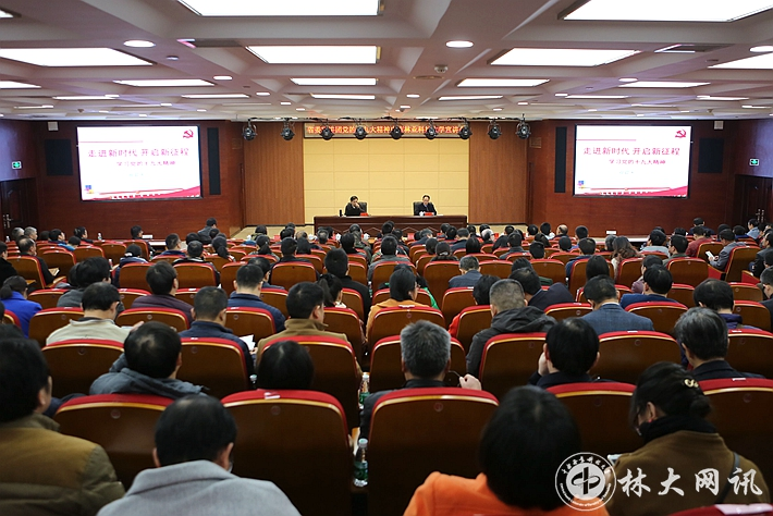 赵运林在主持会议时指出,全校各部门、单位要以这次省委宣讲团来校宣讲活动为契机,再次掀起新的学习高潮,切实把思想和行动统一到中央、省委的部署和要求上来,努力当好建设高水平大学的排头兵。他说,今天之后,全校各基层党组织要牢固树立进取意识、机遇意识、责任意识,要通过广泛深入的宣传普及,使十九大精神转化为师生员工的共识、共为,汇聚加速中南林科大科学发展的强大正能量。 (文/刘艳 审核/周预分)