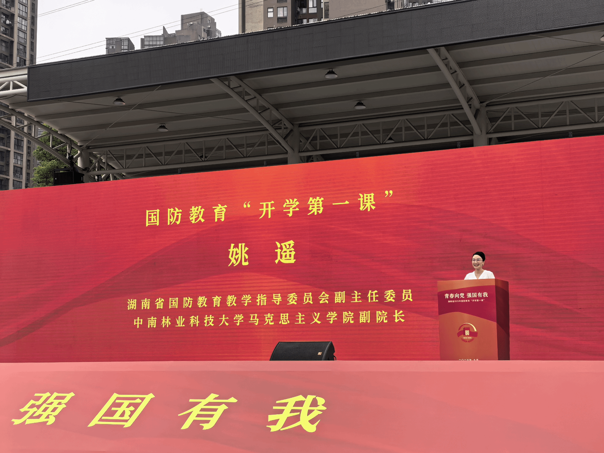 本次活动主题为“青春向党、强国有我”,由省委宣传部、省教育厅、省军区政治工作局主办,旨在进一步推动我省全民国防教育深入普及,激发全省大中小学生“国防有我、青春报国”的责任感和使命感。各市州委宣传部、各市州教育局有关负责人,长沙市大中小学校师生代表、驻地部队官兵代表等1000余人参加启动仪式。我院副院长姚遥教授受邀现场讲授国防教育“开学第一课”。(编辑/汤佳 一审/张赓 二审/姚遥 三审/邓集文)