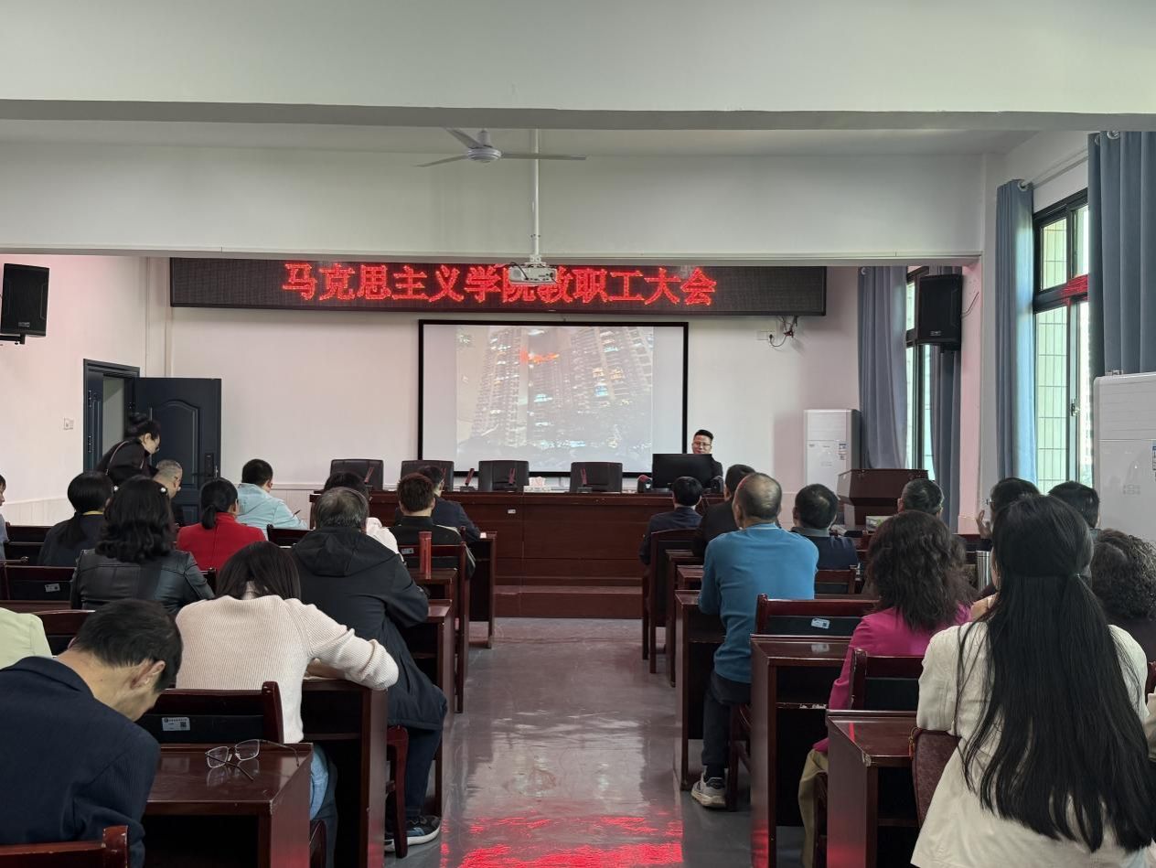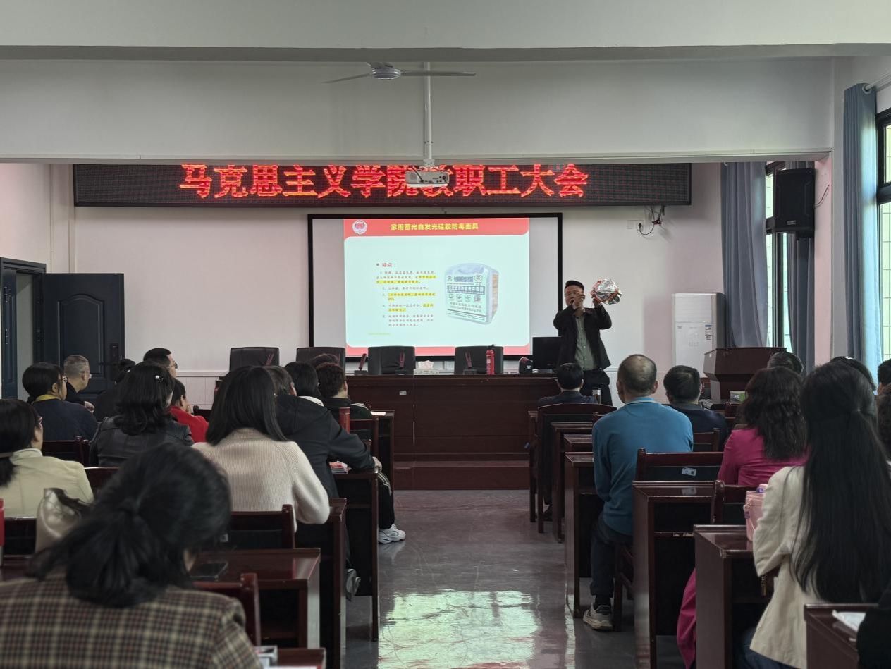 为深入推进2025年消防宣传月活动,切实提升教职工消防安全意识和应急处理能力,11月14日,马克思主义学院特邀王坤教官,为学院全体教职工开展以“全民消防,生命至上——安全用火用电”为主题的消防安全知识培训会。会议由学院党委书记邓集文主持,全体教职工参会。