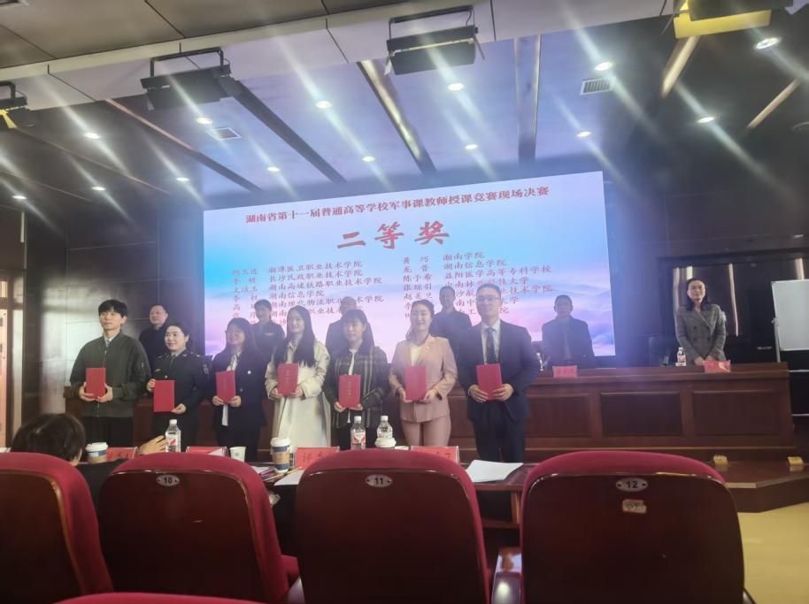 11月26日-27日,由湖南省教育厅主办的湖南省第十一届普通高等学校军事课教师授课竞赛现场决赛在湖南环境生物职业技术学院举行本次赛事历经校级初赛、省级复赛、现场决赛三个阶段,经各高校推荐、资格审查、专家评审及组委会审定,90位教师晋级省级复赛,最终23位教师入围现场决赛。赛事评选出一等奖9名、二等奖14名、三等奖22名。我院王德明老师获得一等奖,张琼引老师获得二等奖。(图、文、编辑/汤佳 一审/孙欢 二审/张赓 三审/邓集文)