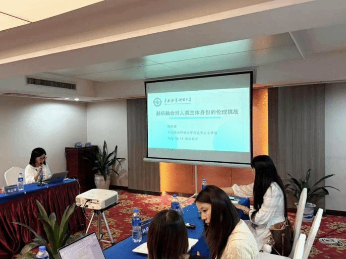 参与本次论坛的有来自清华大学、北京大学、浙江大学、同济大学、中国人民大学、中南大学、湖南师范大学、大连理工大学、华南师范大学、上海交通大学、国防科技大学等在应用伦理学、科技伦理、技术哲学等领域方面的知名专家学者以及在校研究生。本次论坛以“人工智能价值敏感设计”为主题,设置了多场主旨报告、主题报告、分论坛研讨以及学术交流活动。我院2024级硕士研究生陈凯丽在“脑机接口、智慧医疗与疗养伦理”分论坛以《脑机融合对人类主体身份的伦理挑战》为题作了汇报发言。她指出,脑机融合技术的迅猛发展为人类带来便利与希望,但也引发了对人类主体的身份认知、自主性与隐私权的伦理挑战。基于此,需秉持审慎态度,在技术、伦理、法律协同下优化其发展,以保障人类福祉和推动社会迈向可持续发展的“人机共生”的未来。