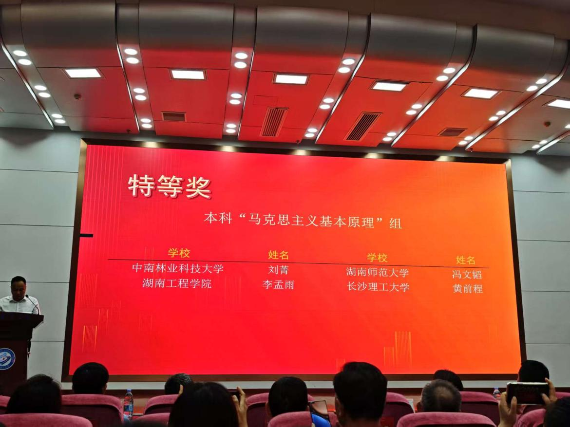 7月23日,由湖南省教育厅主办,长沙理工大学承办的首届“潇湘杯”高校思政课教学展示活动在长沙理工大学云塘校区落下帷幕。经过激烈的竞争,我校进入最终决赛的三支教学团队取得了2项特等奖、1项一等奖的优异成绩。其中姚遥老师(团队成员:孙欢、张赓、罗匡、卿定文、胡美灵)和刘菁老师(团队成员:熊玲君、蒋洁霞、谢利平、吴树波、张群英、康俊辉)分别在研究生“新时代中国特色社会主义理论与实践”组和本科“马克思主义基本原理”组中斩获特等奖;刘思华老师(团队成员:李美香、廖昌军、刘显著、刘嘉佳、张治忠)在本科“中国近现代史纲要”组中获得一等奖。