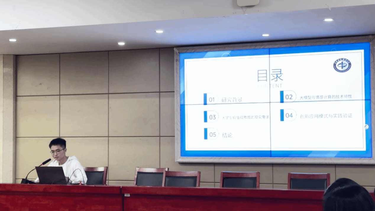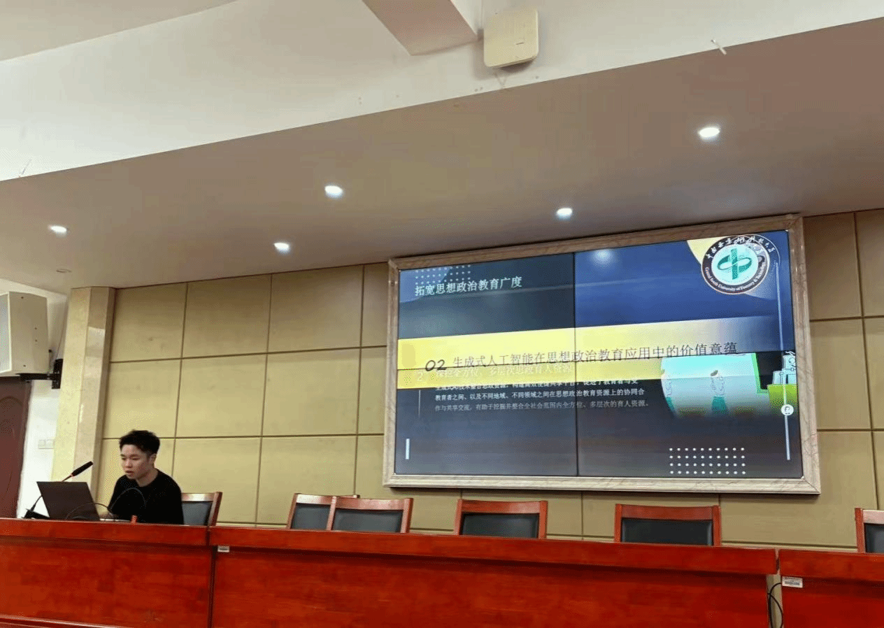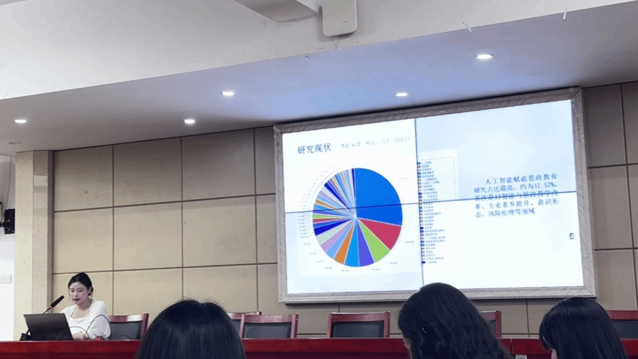 学术分享环节中,我院五位优秀学术代表依次登台,结合文献研究与实践案例,深入探讨人工智能赋能思政教育的创新模式、潜在挑战及应对策略。他们的汇报逻辑严谨、观点鲜明,充分展现了我院研究生扎实的学术素养与敏锐的时代洞察力。湖南科技大学周建华、许浩老师逐一点评,既肯定研究价值,也为后续深化研究指明方向,现场研讨氛围热烈。