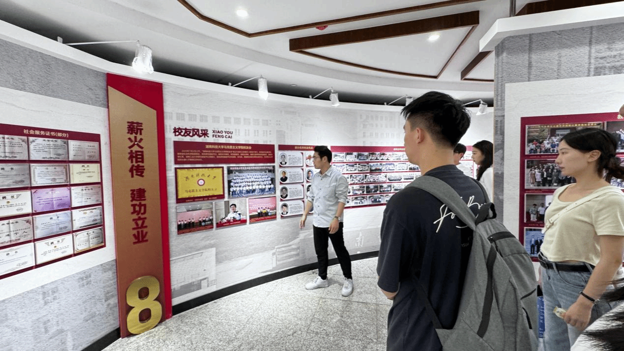 最后环节,东道主带领参会人员参观了湖南科技大学马克思主义学院院史馆,沉浸式感受其深厚的历史积淀与学科发展成就。全体与会人员在立言楼前合影留念,为此次学术交流画上圆满句号。