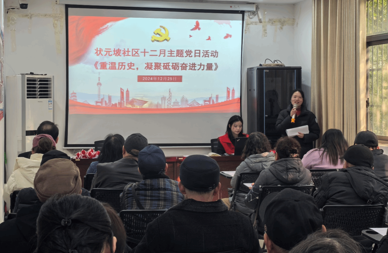 在校外,宣讲团走进社区。宣讲团结合状元坡社区党支部主题党日活动,与社区的党员同志们共同学习了一堂党史理论课,社区的退休党员对宣讲团成员宣讲给出高度评价,并鼓励大家坚持开展党的理论知识宣讲活动,学好专业知识,为祖国贡献青年力量。