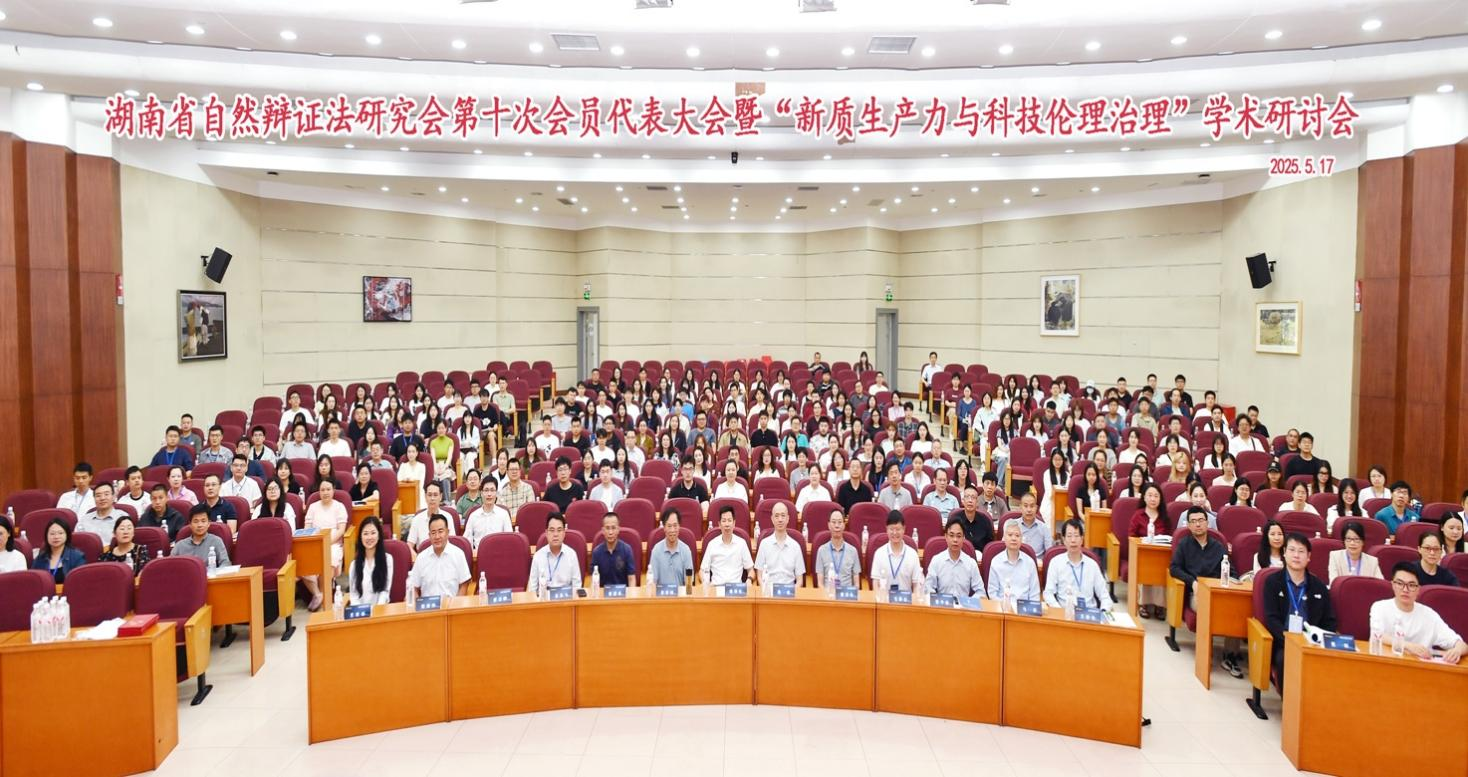 2025年5月17日,湖南省自然辩证法研究会第十次会员代表大会暨“新质生产力与科技伦理治理”学术研讨会在湖南师范大学召开。来自国防科技大学、中南大学、湖南大学等省内高校及科研院所的近300名专家学者齐聚一堂,共话学术前沿与时代命题。中南林业科技大学马克思主义学院姚遥教授(研究会常务理事)、徐保风教授(研究会理事)、孙欢副教授(研究会理事)及7名教师会员代表应邀出席本次大会。