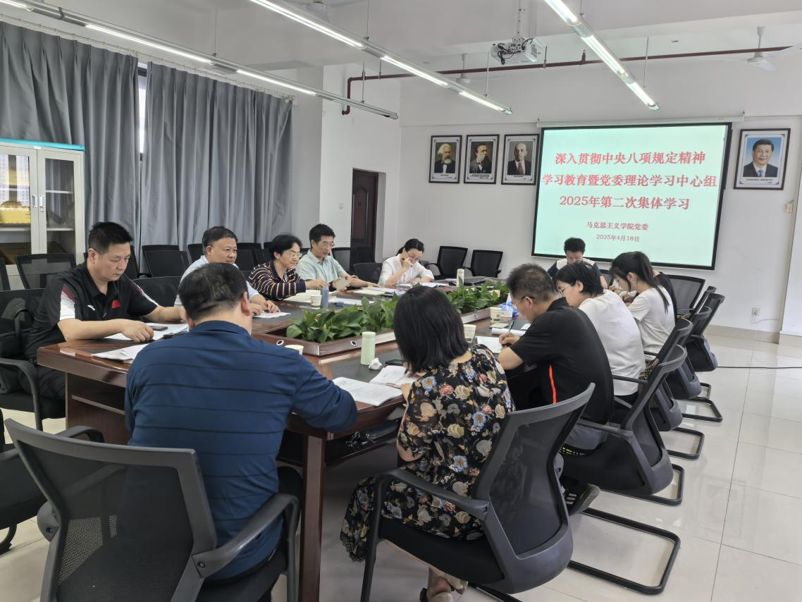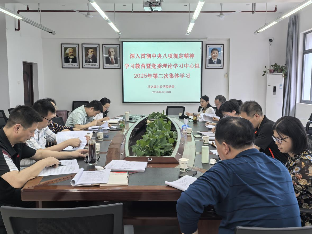 为深入落实中央八项规定及其实施细则精神,进一步巩固和加强作风建设,4月18日,马克思主义学院党委开展深入贯彻中央八项规定精神学习教育暨党委理论学习中心组2025年第二次集体学习。学院党委班子成员、各党支部书记及教研室主任参加学习。会议由学院党委书记邓集文主持。