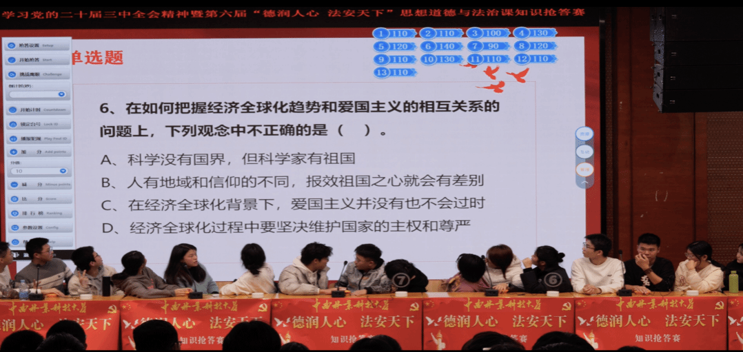 赛事不仅注重知识考查,还设置了精彩的点评与讲解环节。评委老师对重点题目深入剖析,进一步加深了在场师生对党的二十届三中全会精神的理解、对思想道德与法治内涵的感悟,让大家在竞赛中学习,在学习中成长。