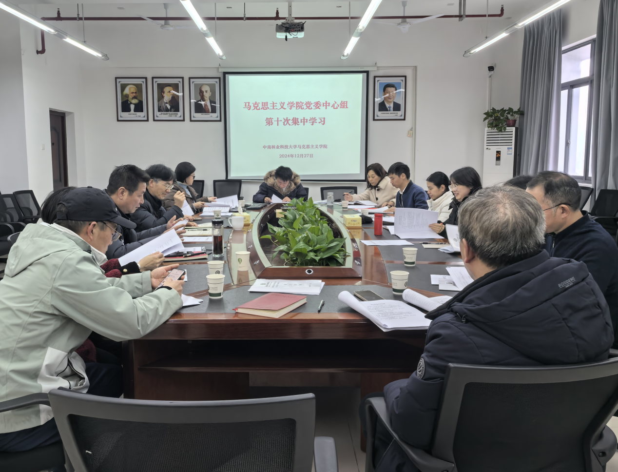 12月27日下午,马克思主义学院党委理论学习中心组在博文楼南1010会议室开展2024年第十次集中学习,会议由学院党委书记邓集文主持,学院党委委员、李雄光、各支部书记、教研室主任参加学习。