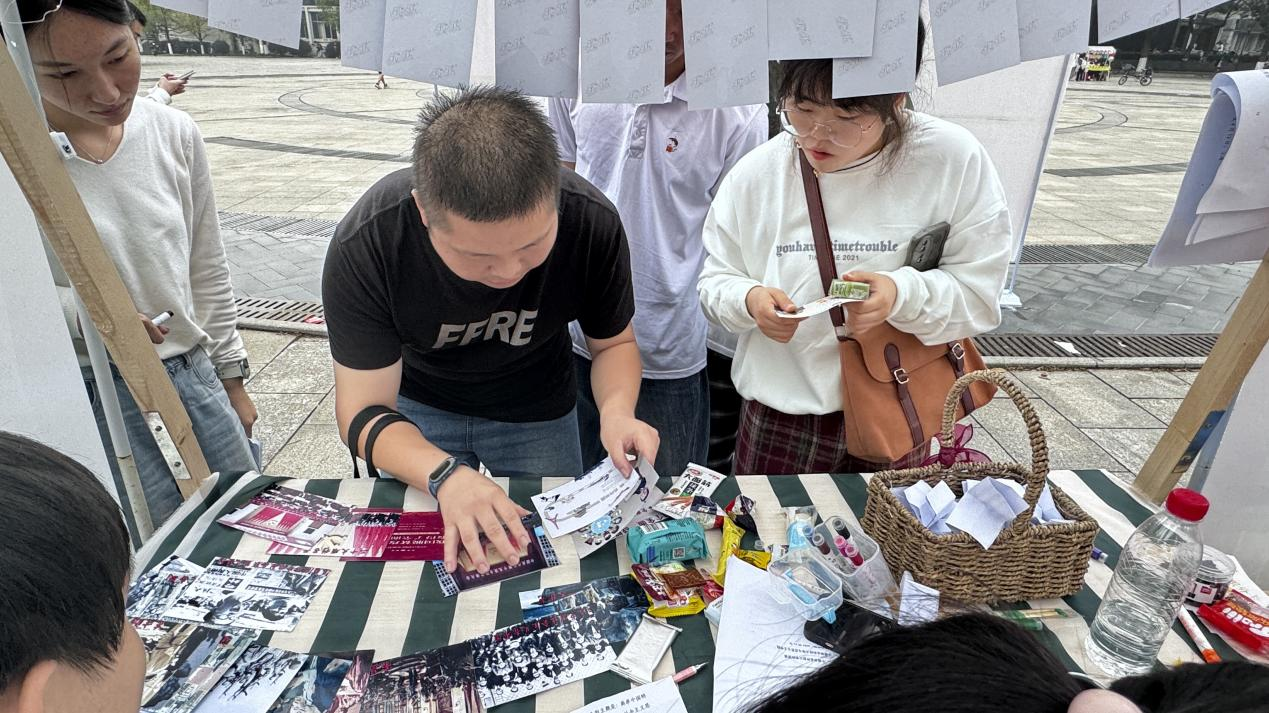 活动一开始,参与者们便被广场上一抹红深吸引,在马院设点处排起了长长的队伍。每一闯关环节都深受参与者的喜爱,尤其是看图猜历史人物环节,更是吸引了大量学生排队等候。活动现场展示了多位革命先驱的照片,包括鲁迅、陈独秀、李大钊等。参与者需要根据图片中的线索,猜测出这些历史人物的名字。大家兴奋地讨论着图片中的人物特征,试图从每一个细微之处捕捉到关键信息。当有人成功猜出历史人物的名字时,现场总是爆发出热烈的掌声和欢呼声,这种成就感让每个人都跃跃欲试。
