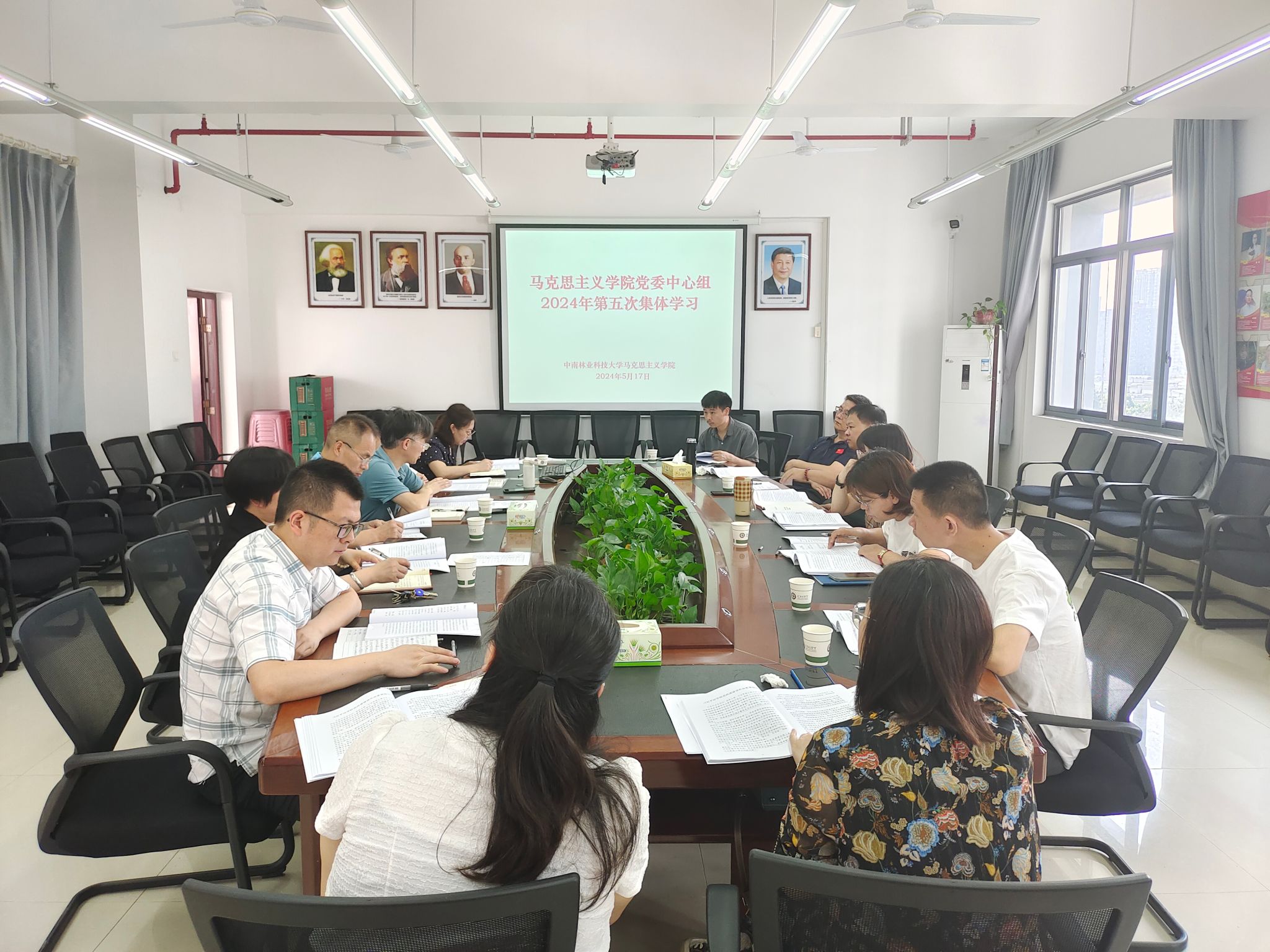 5月17日下午,我院党委理论学习中心组在博文楼南1010会议室开展2024年第五次集体学习,会议由学院党委书记邓集文主持,学院党委委员、李雄光、姚遥、各支部书记、教研室主任参加学习。