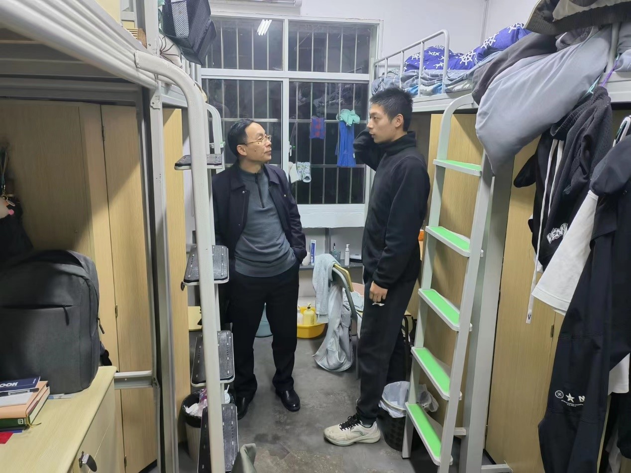 同时,周书记和刘老师在检查过程中还了解了研究生的学习状况,特别是研究生三年级的论文写作与工作情况和研究生二年级的论文开题情况,并对同学们提出期望:希望同学们加强自我管理,落实安全用电的相关制度,保持整洁有序的宿舍环境。养成健康文明、积极向上的生活习惯,保持阳光开朗、乐于表达的良好心态。珍惜在校时光,充分利用课余时间开展各种有益身心健康的活动,留下丰富、充实、美好的研究生时光。