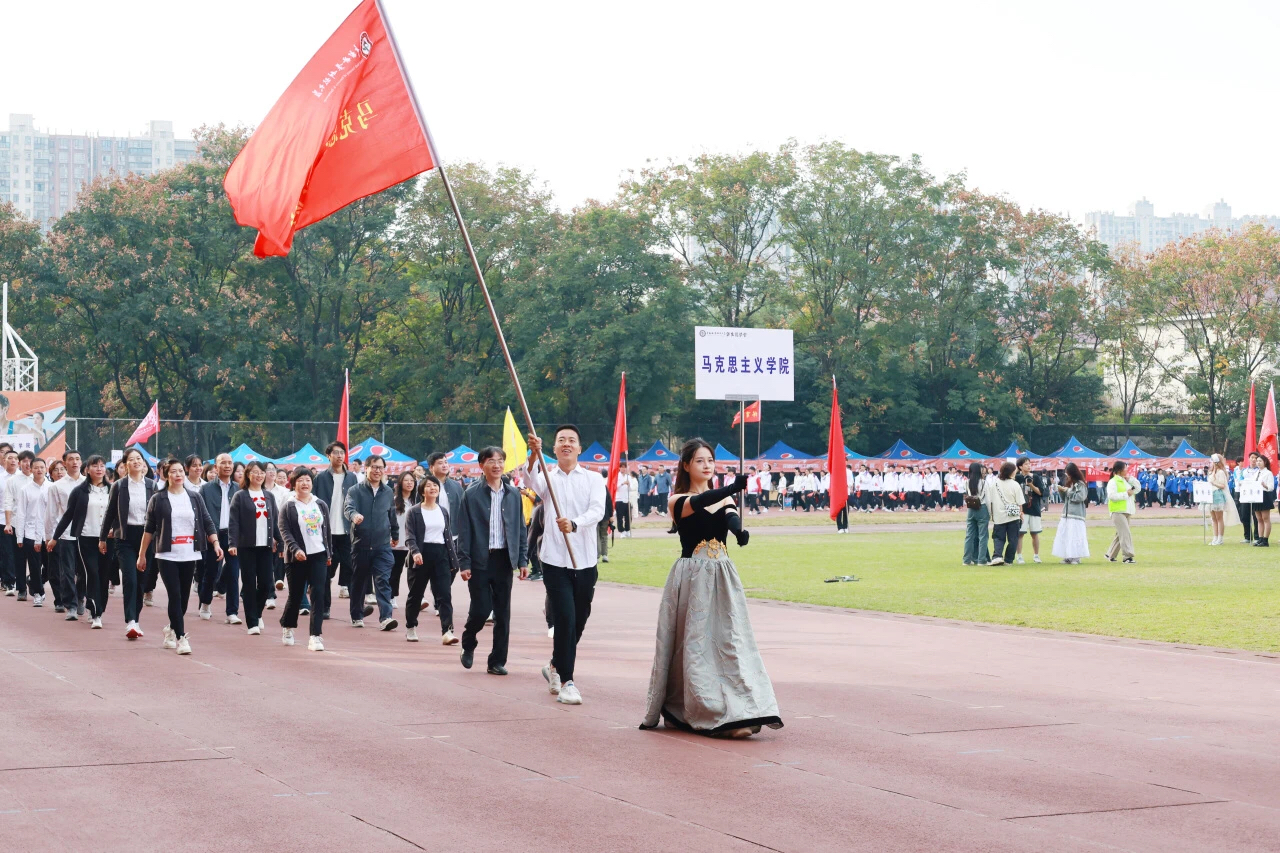 开幕式上,伴随着激情昂扬的进行曲,马克思主义学院迈着整齐的步伐走过主席台,唱响“马院起航,迎风飞扬,携手并进,共创辉煌!”的嘹亮口号。