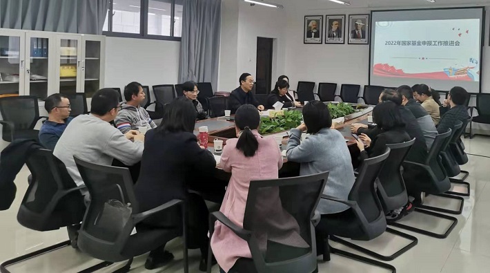 周预分首先传达了学校国家基金项目申报工作推进会精神。一是要提高站位。高度认识国家基金项目申报工作的重要意义。二是要明确任务。认真做好2022年国家基金项目的申报计划。三是要做好表率。符合条件的学院领导干部带头申报。四是要彰显特色。项目申报要结合学校特色和优势。五是充分利用学校人力资源的优势,加强学院、学科之间的交流。他从学院申报工作组织、选题视角、团队建设等方面进行了详细的安排和布置。