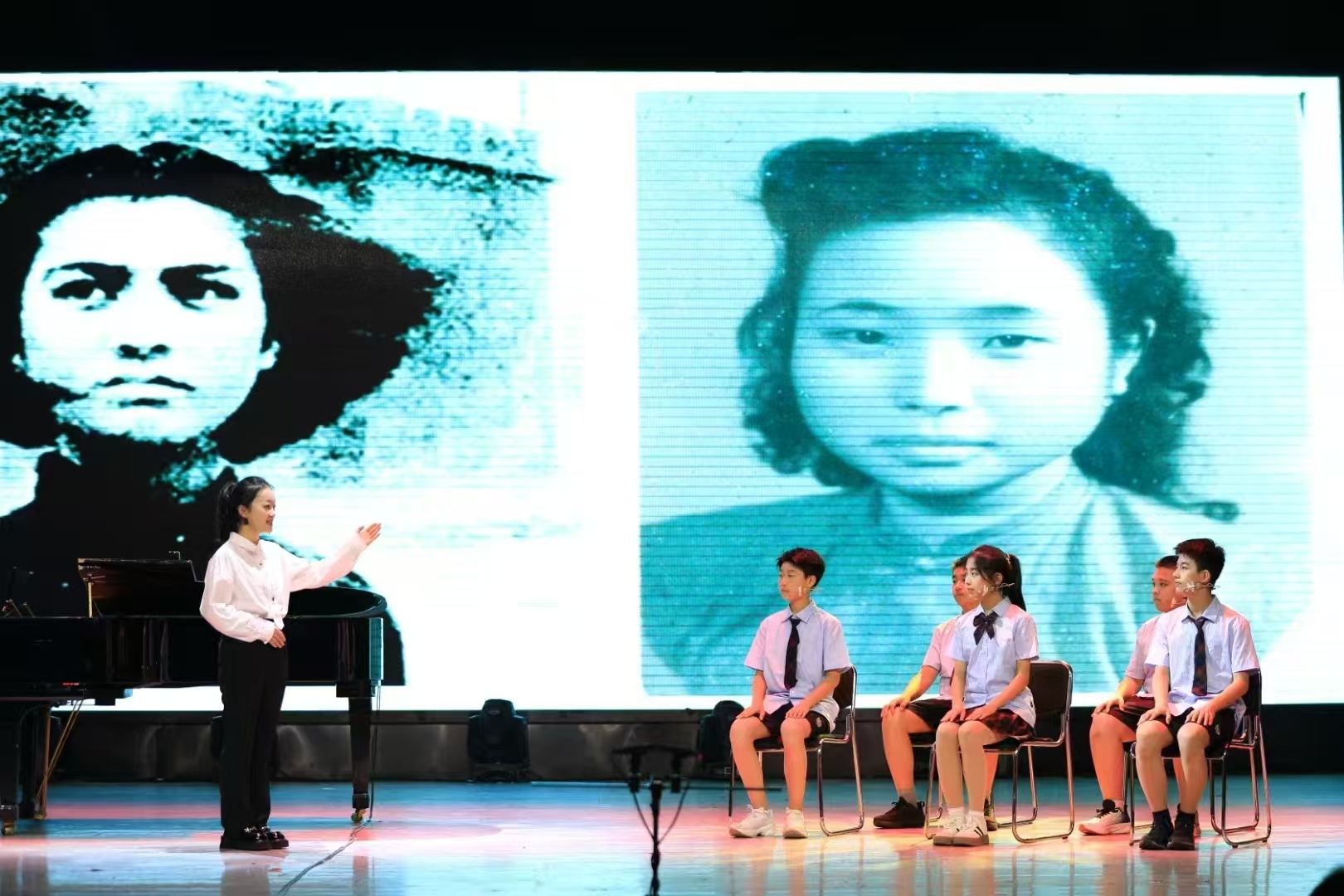 长沙市外国语学校的中学生代表现场表演《巾帼志 青春行》