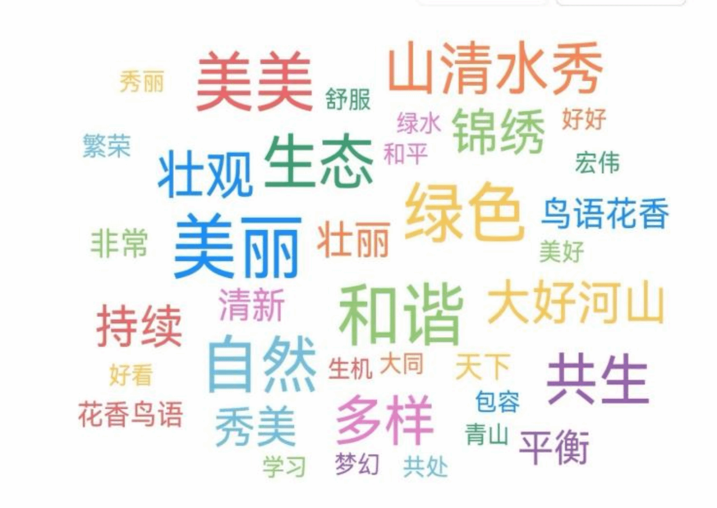 在“建设美丽中国”教学环节,熊婷婷老师紧扣党的二十届四中全会精神与“十五五”规划目标,播放《八倍镜下的美丽中国》短片,展现祖国山河的生态之美。紧接着,她在平台发起“美丽中国有何特点?”的头脑风暴活动,学生通过手机端畅所欲言,“绿色”“和谐”“可持续”等词汇在课堂大屏上汇聚成多彩的词云图,直观呈现了同学们对生态文明建设的共同认知。